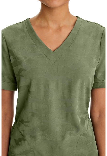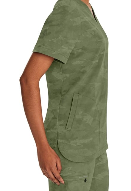Bluza medyczna damska Joy Camo wyposażona jest w dwie pojemne kieszenie. Posiada dekolt w kształcie litery V. Zaszewki z tyłu ciała zapewnia swobodę ruchów.