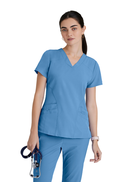 Bluza medyczna damska BARCO z linii Pulse, posiada dekolt w kształcie litery V. Łącznie wyposażona została w 4 pojemne kieszenie. Materiał z którego została wykonana jest rozciągliwy, posiada również technologię antystatyczną, która zapobiega przyleganiu sierści zwierząt.