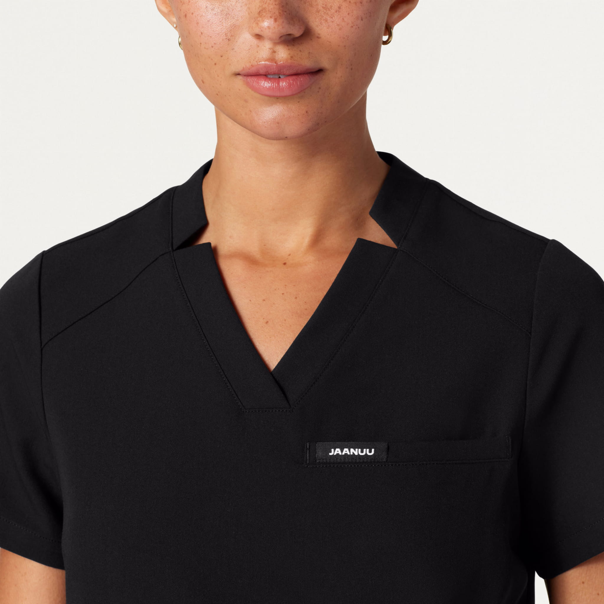 Bluza medyczna damska zaprojektowana z myślą o intensywnej, codziennej pracy. Klasyczny krój uzupełniono funkcjonalnymi detalami, które zapewniają wygodę przez cały dzień. Dekolt w serek ułatwia zakładanie, a dopasowany fason z zaszewkami subtelnie podkreśla sylwetkę, nie ograniczając swobody ruchów.