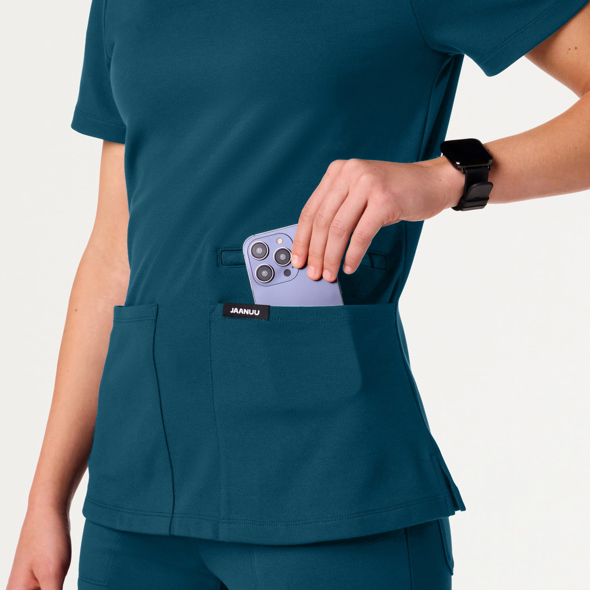 Tkanina została zaprojektowana tak, aby odprowadzać wilgoć, była odporna na zagniecenia i blaknięcie, a dzięki antybakteryjnemu wykończeniu Silvadur™ pomaga utrzymać świeżość i higienę przez cały dzień.