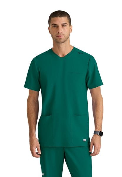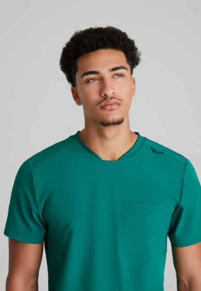 Bluza medyczna męska Thesis Skechers By Barco to top z ekologicznej tkaniny, zaprojektowanej z myślą o wysokim komforcie użytkowania oraz aktywnym stylu życia. Zaokrąglony dekolt z dzianinowym wykończeniem przy szyji, nadaje elegancji, a wydłużony tył bluzy zapewnia lepsze dopasowanie. Łącznie bluza posiada 3 kieszenie: dwie kieszenie na dole bluzy oraz kieszeń na piersi z przegródką na długopis.