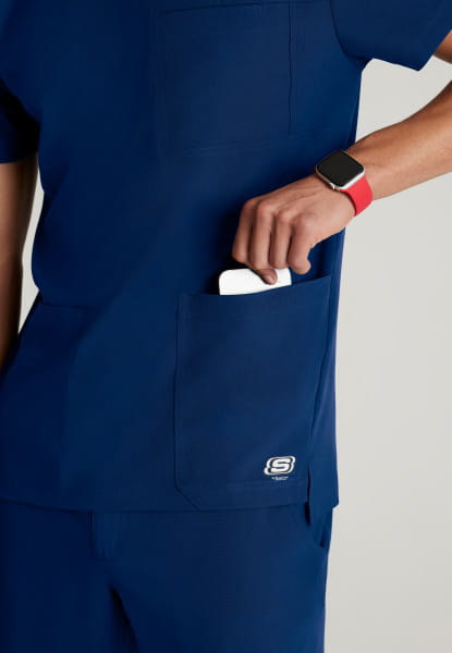 Bluza medyczna męska Thesis Skechers By Barco to top z ekologicznej tkaniny, zaprojektowanej z myślą o wysokim komforcie użytkowania oraz aktywnym stylu życia. Zaokrąglony dekolt z dzianinowym wykończeniem przy szyji, nadaje elegancji, a wydłużony tył bluzy zapewnia lepsze dopasowanie. Łącznie bluza posiada 3 kieszenie: dwie kieszenie na dole bluzy oraz kieszeń na piersi z przegródką na długopis.