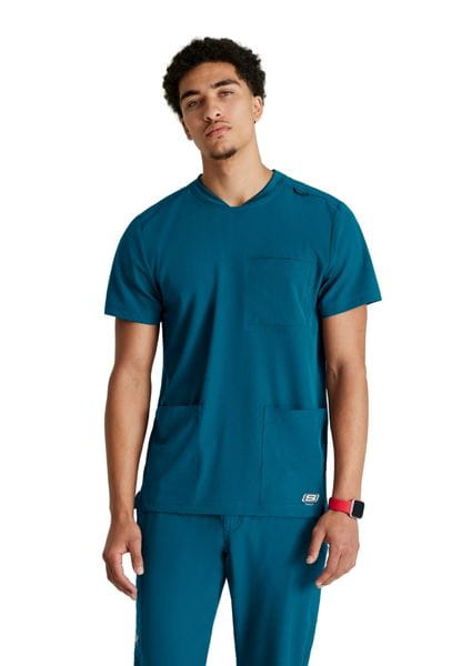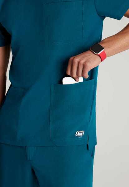 Bluza medyczna męska Thesis Skechers By Barco to top z ekologicznej tkaniny, zaprojektowanej z myślą o wysokim komforcie użytkowania oraz aktywnym stylu życia. Zaokrąglony dekolt z dzianinowym wykończeniem przy szyji, nadaje elegancji, a wydłużony tył bluzy zapewnia lepsze dopasowanie. Łącznie bluza posiada 3 kieszenie: dwie kieszenie na dole bluzy oraz kieszeń na piersi z przegródką na długopis.