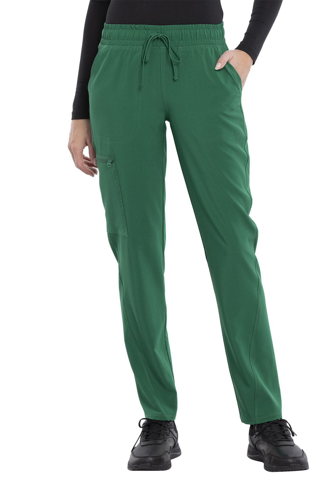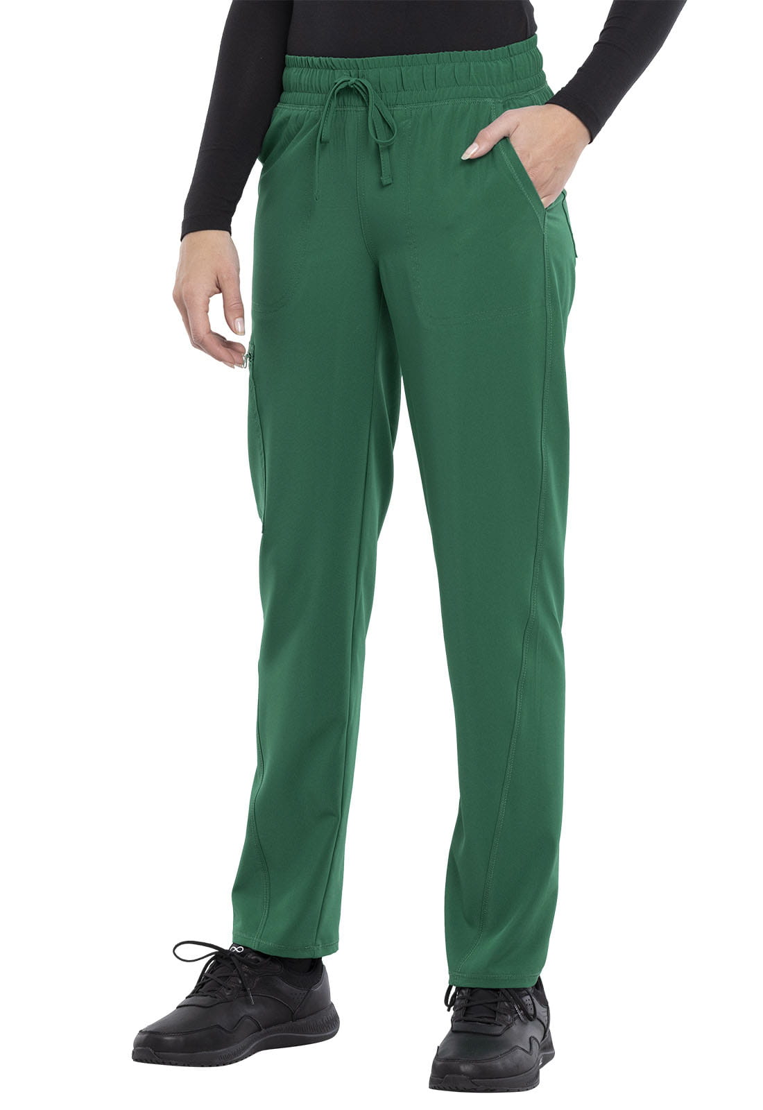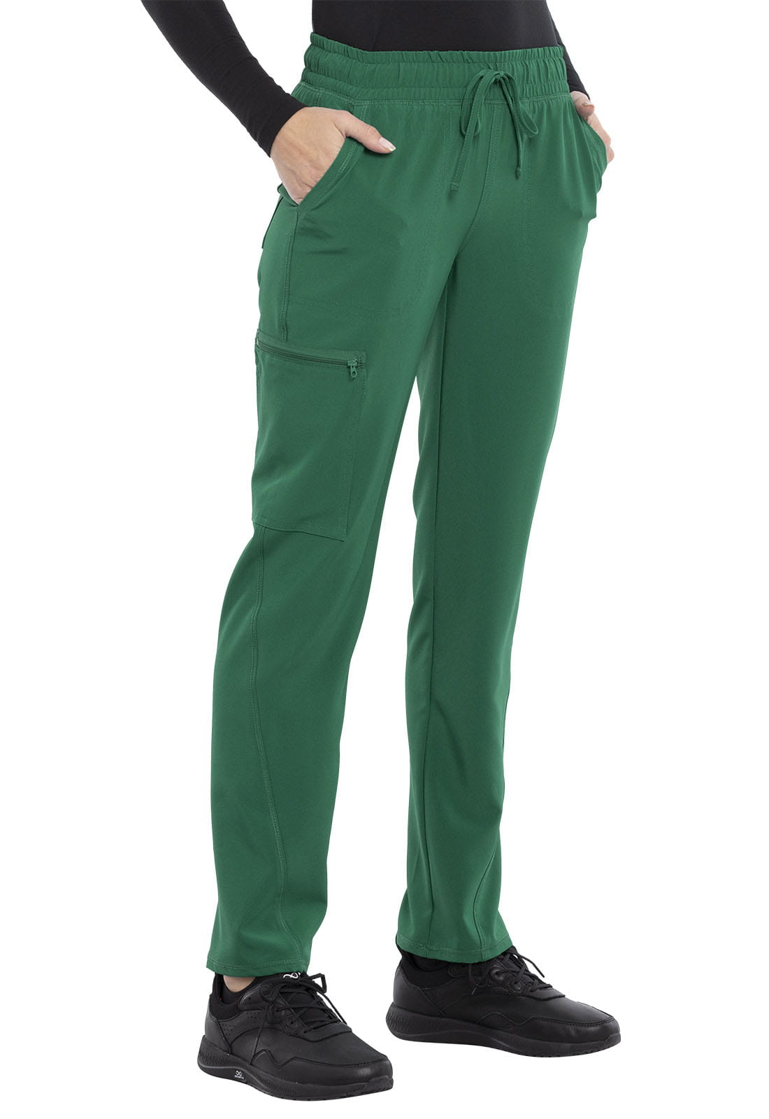 Spodnie medyczne damskie Allura, wyposażone są w gumę w pasie wraz ze sznurkiem. Posiadają pięć kieszeni: dwie przednie, jedna kieszeń cargo zapinana na zamek i dwie naszywane kieszenie tylne.