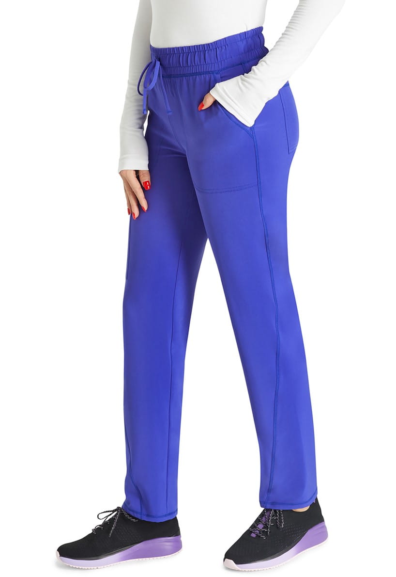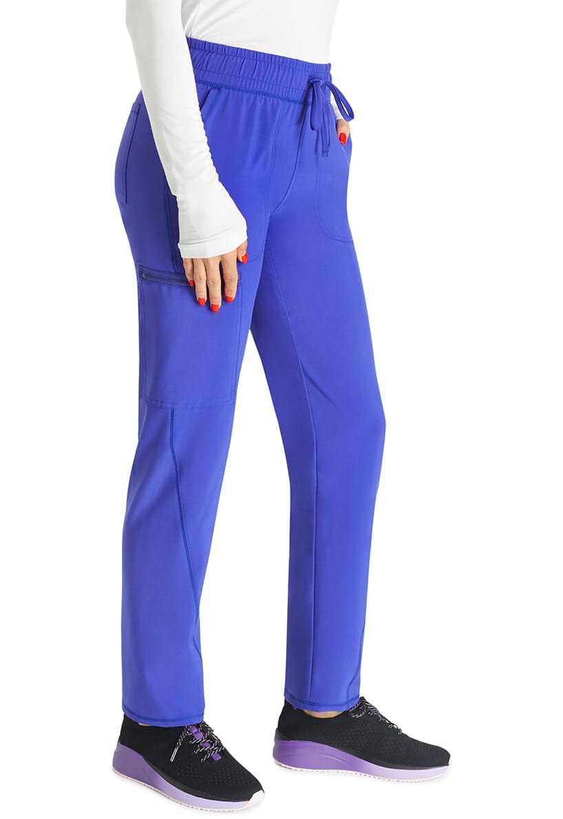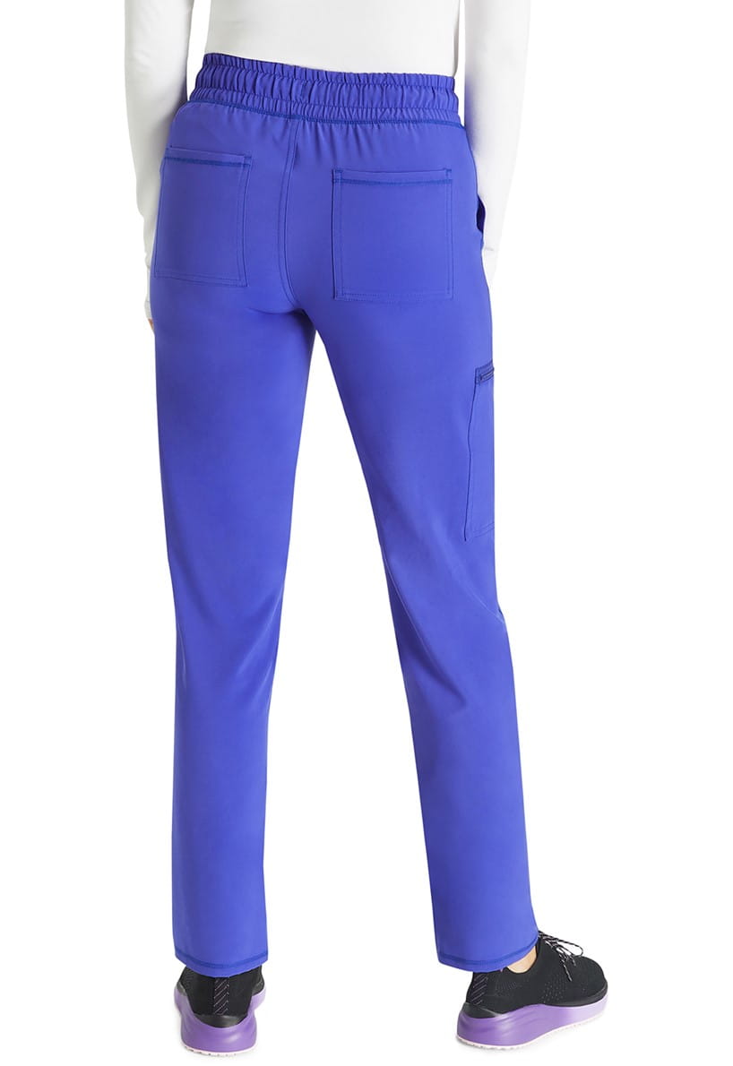 Spodnie medyczne damskie Allura, wyposażone są w gumę w pasie wraz ze sznurkiem. Posiadają pięć kieszeni: dwie przednie, jedna kieszeń cargo zapinana na zamek i dwie naszywane kieszenie tylne.