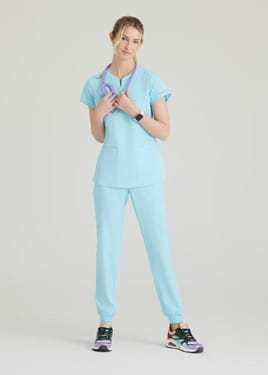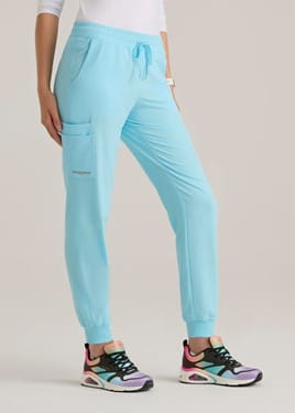 Spodnie medyczne damskie jogger Skechers by Barco Theory pastelowy błękit